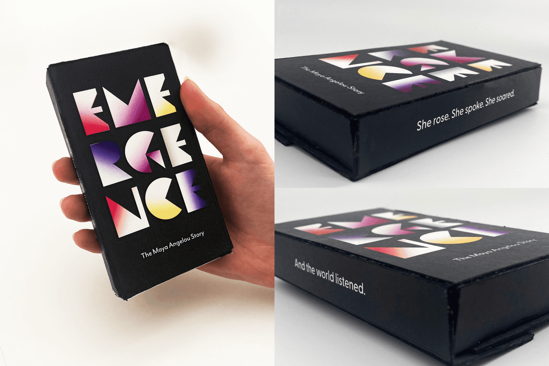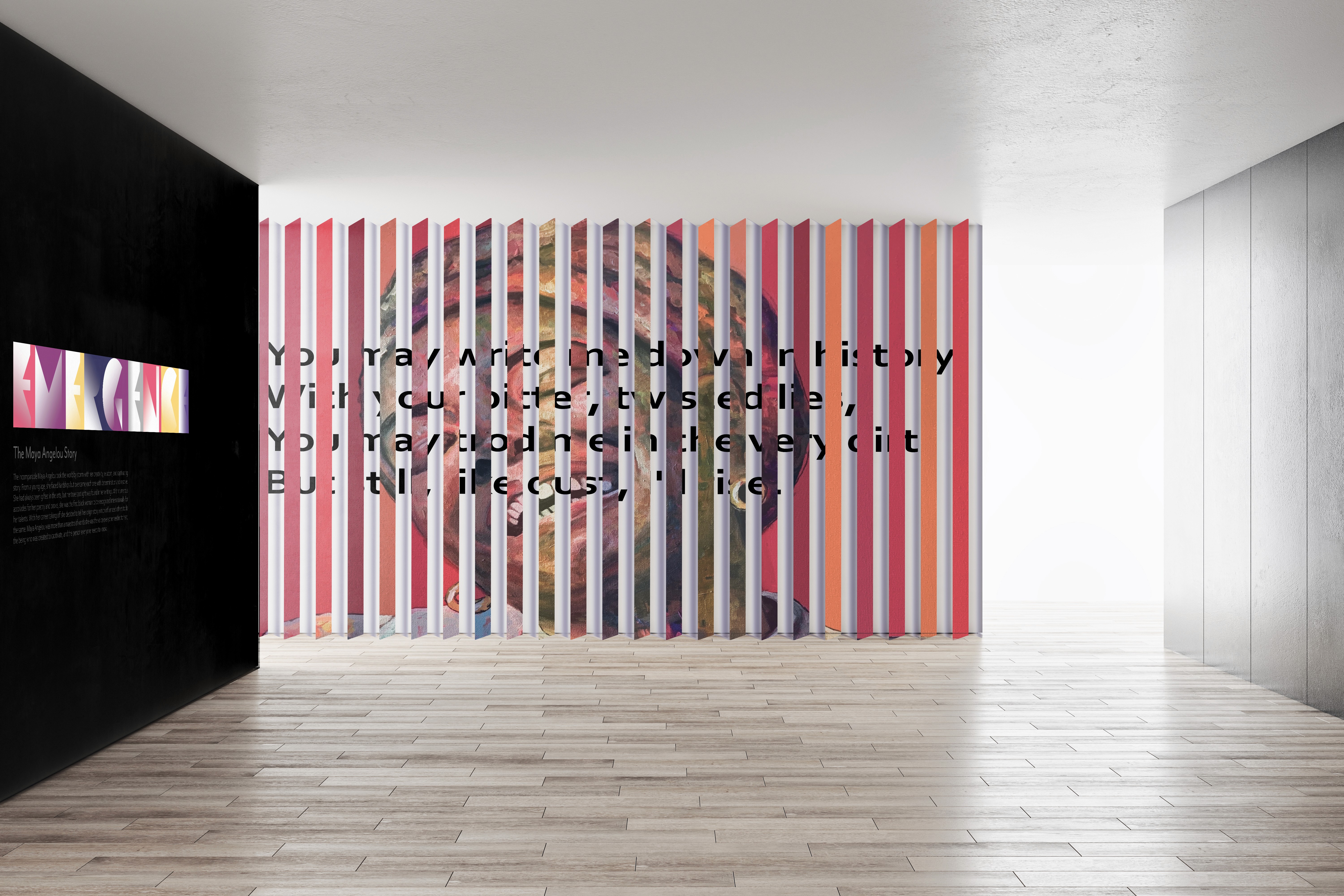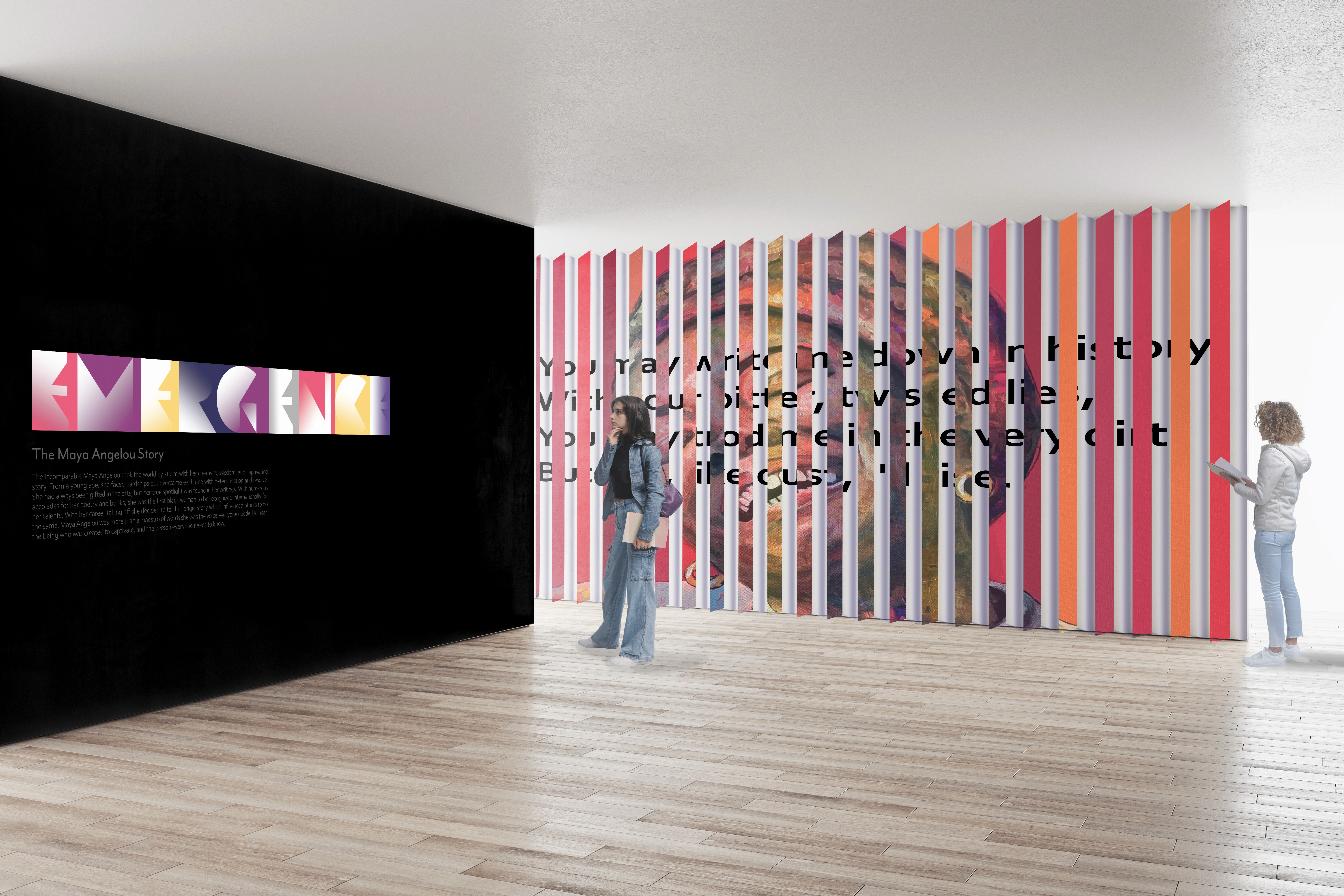 For this project, I transformed Maya Angelou’s vibrant spirit into a dynamic, interactive exhibition designed to educate, empower, and inspire. To extend the experience, I created a souvenir box and an exhibition book featuring her most powerful poems. I also designed a compelling poster and logo to unify the exhibit’s identity. Through these elements, the exhibition honors Angelou’s enduring legacy, ensuring her brilliance continues to captivate and inspire.