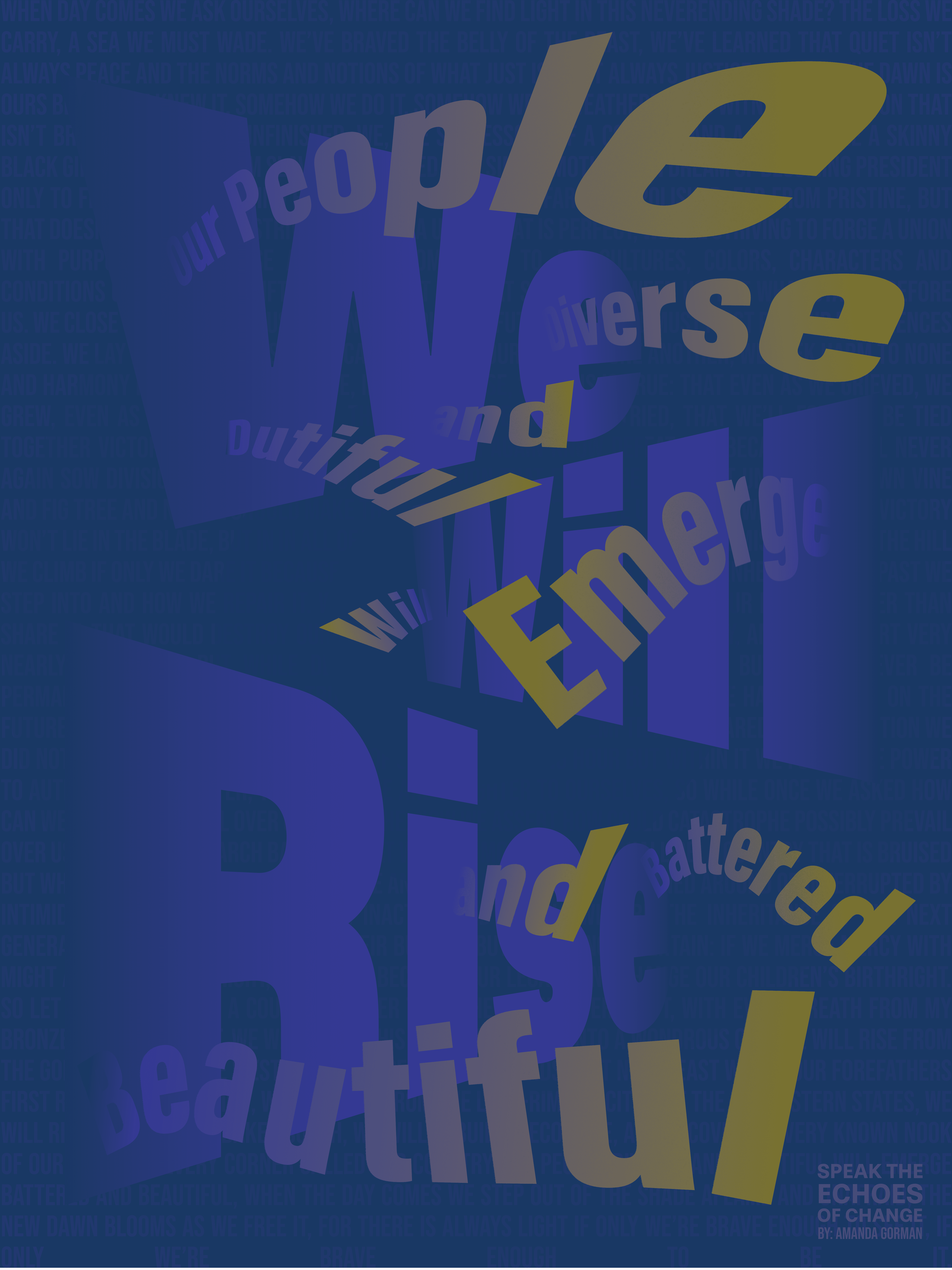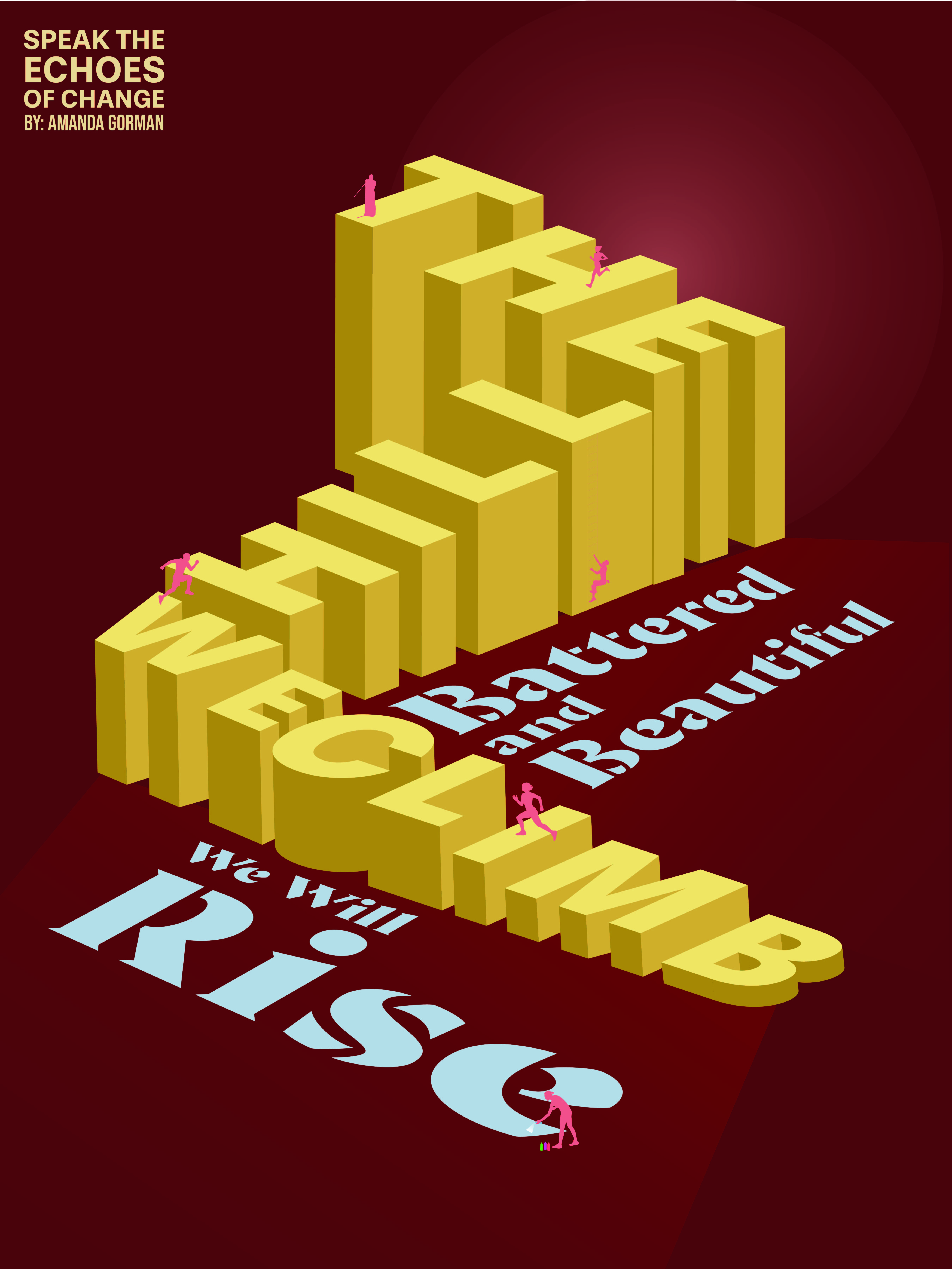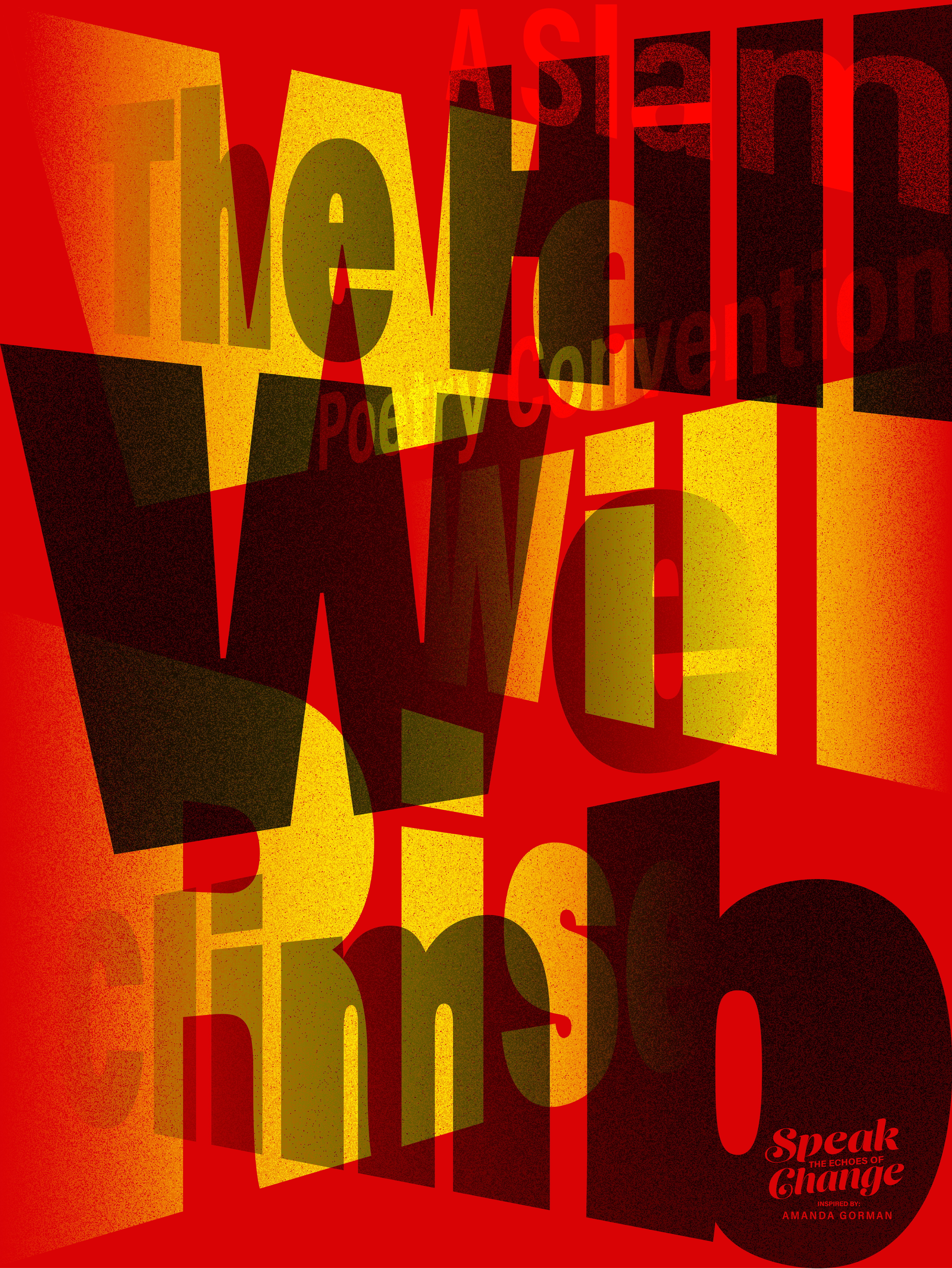 Speak the Echoes of Change demonstrates how design can transform poetry from page to participatory experience. By translating Gorman's message across multiple mediums—print, motion, and interactive installation—the project creates layered entry points for engagement, meeting audiences where they are and inviting them to add their voices to the conversation. The result is a brand system that doesn't just celebrate a poet, but activates her call to action.