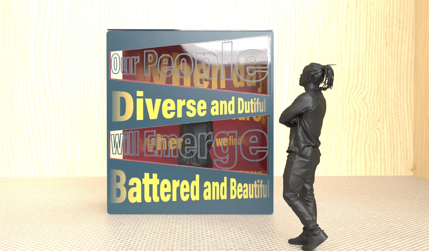 The motion piece pairs Gorman's voice with expressive kinetic typography, using metaphorical imagery to capture the emotional resonance of her words rather than their literal meaning. Building to a brief appearance of Gorman herself, the piece concludes with the convention logo. Designed as an interactive exhibition element, it creates a moment of pause—inviting convention attendees to stop, watch, and reflect on the event's central message.